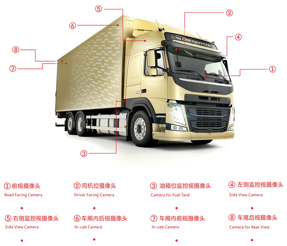 摄像头安装位置(根据车型大小可选多路车厢监控摄像头):